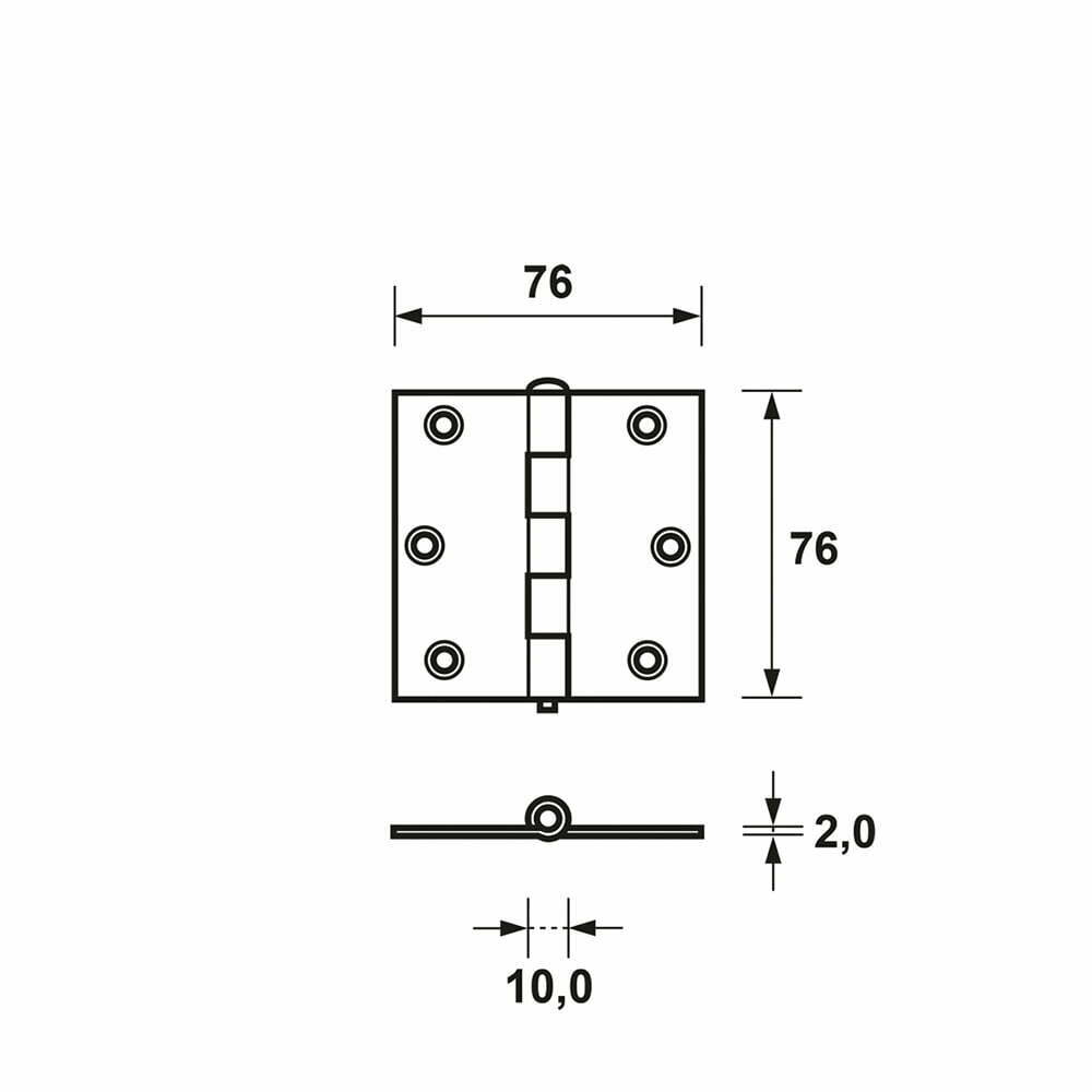 - Ongelagerd, lichtlopend, stalen AXA scharnier met ronde hoeken.