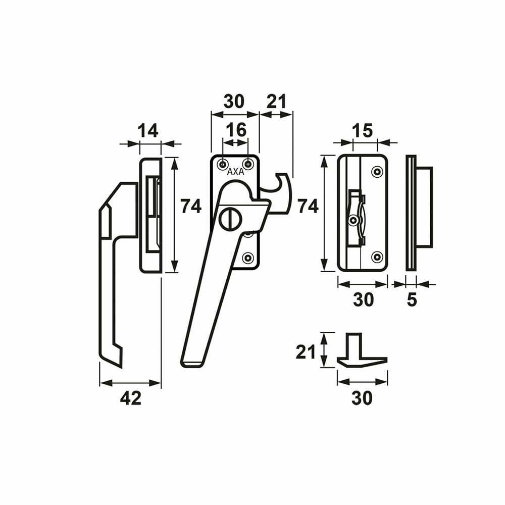 De populaire AXA veiligheidsraamsluiting 3319 is voorzien van ventilatienok en een solide haakschoot zorgt voor een verhoogde inbraakwerendheid. Toepassing: voor naar buiten draaiende draairamen en deuren.
