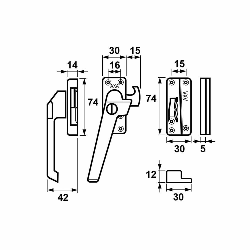 De populaire AXA veiligheidsraamsluiting 3319 is voorzien van ventilatienok en een solide haakschoot zorgt voor een verhoogde inbraakwerendheid. Toepassing: voor naar buiten draaiende draairamen en deuren.