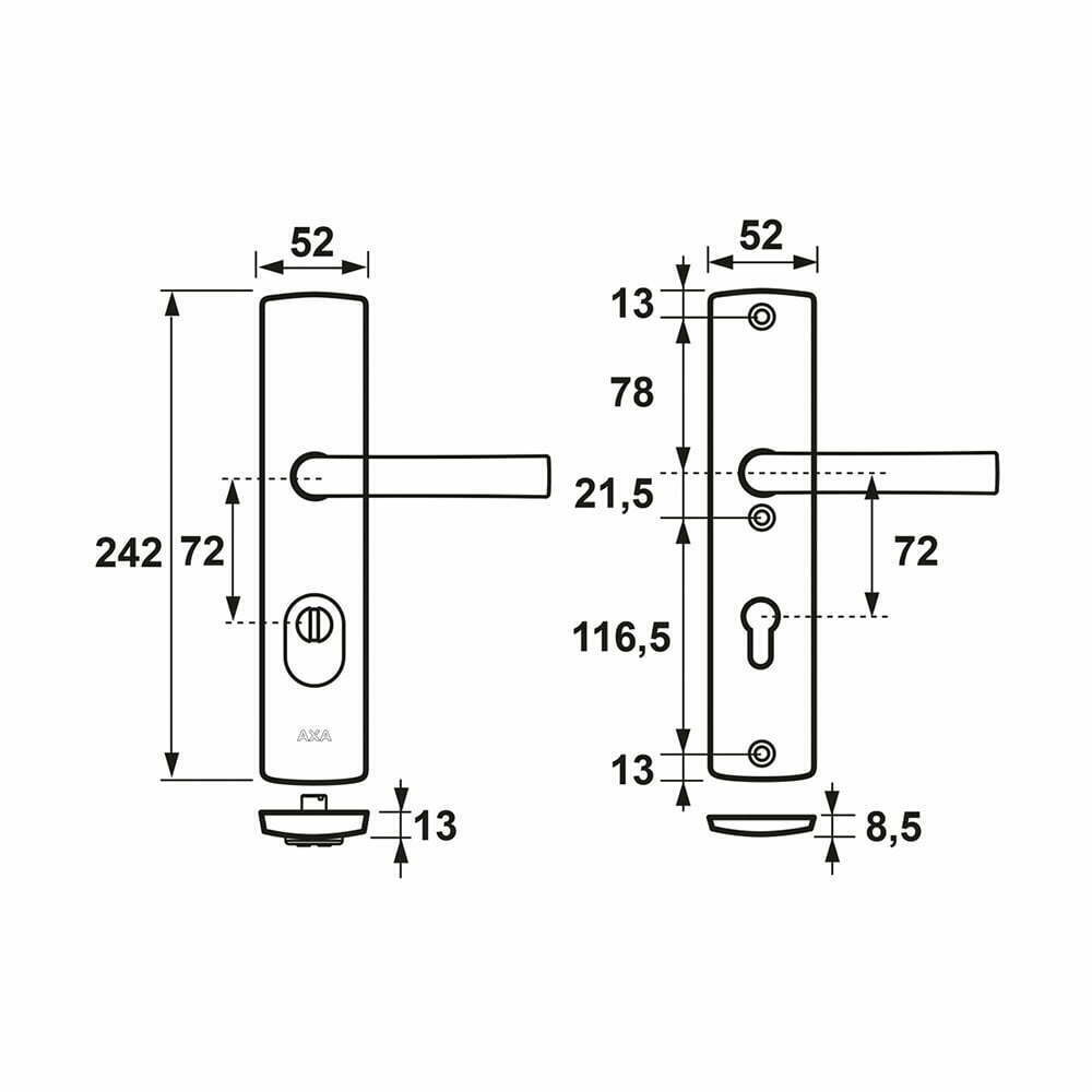 - Standaard toepasbaar op deuren van 38 tot 60 mm dik