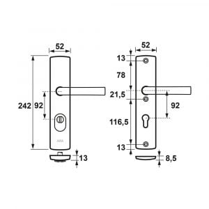 - Standaard toepasbaar op deuren van 38 tot 60 mm dik