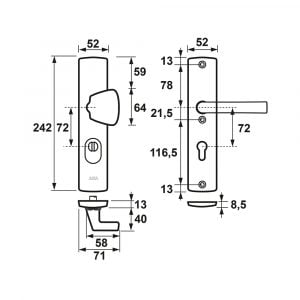 - Standaard toepasbaar op deuren van 38 tot 60 mm dik