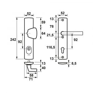 - Standaard toepasbaar op deuren van 38 tot 60 mm dik