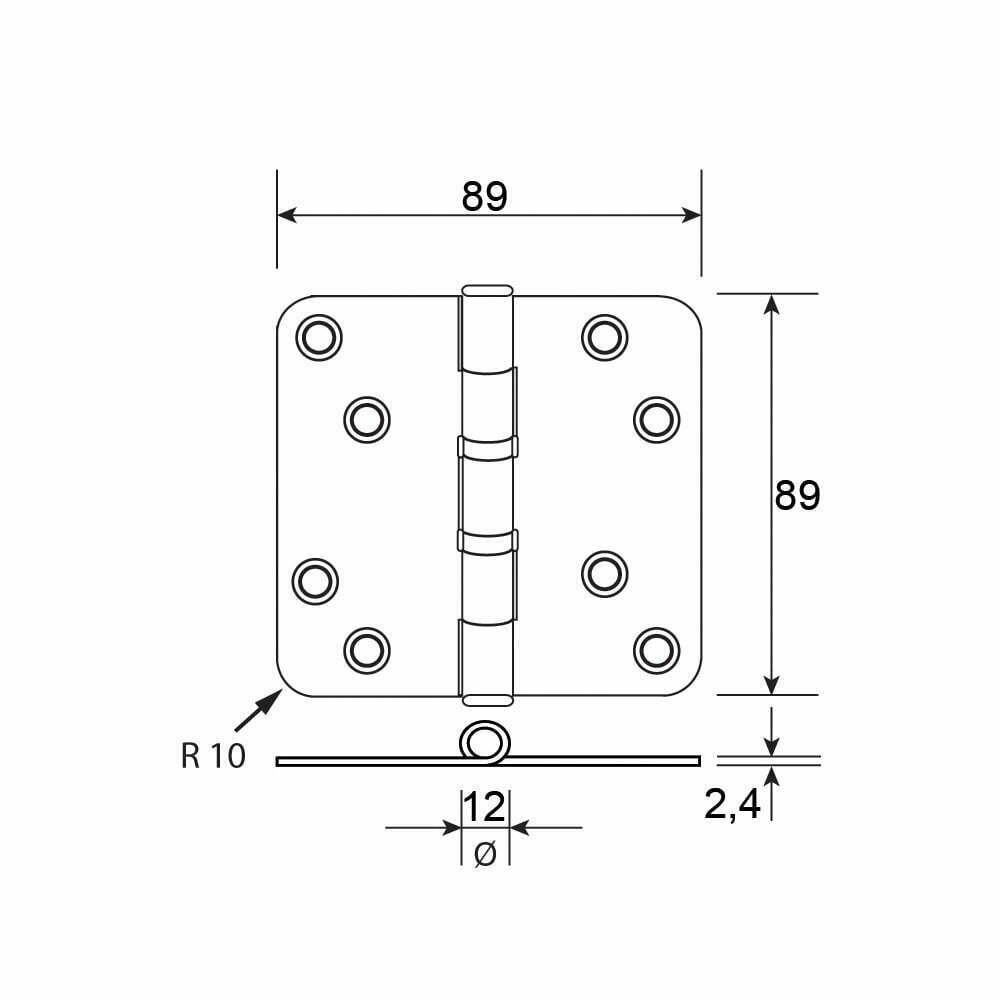 - Lichtlopend, verzinkte kogellagerscharnier met ronde hoeken.