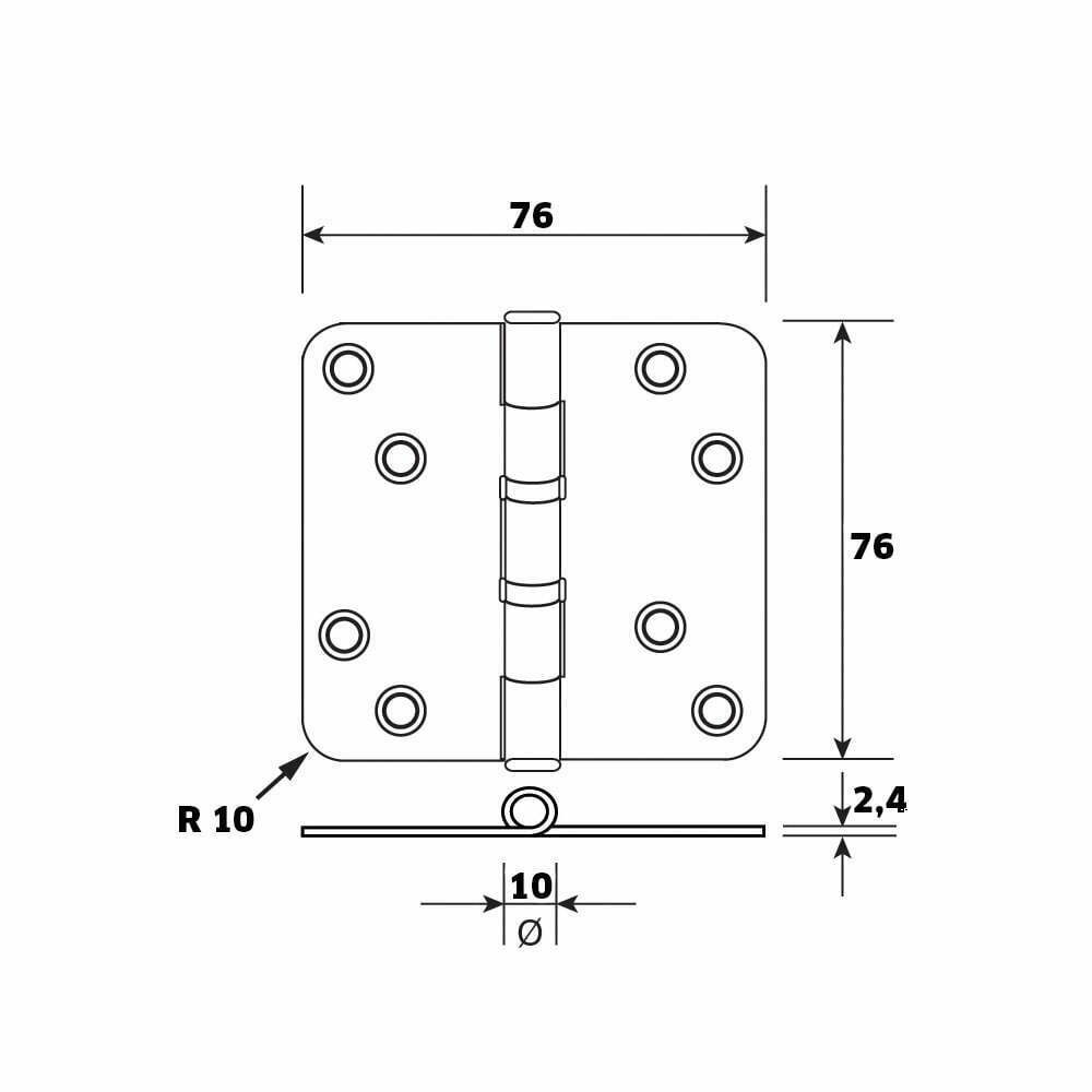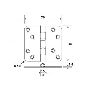 - Lichtlopend, RVS kogellagerscharnier met ronde hoeken.