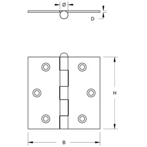 Het scharnier heeft rechte hoeken en een losse pen. De losse pen is voorzien van een kartelrand, die voorkomt dat de pen omhoog kruipt.