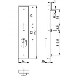 - HOPPE aluminium inbraakwerend langschild met cilinder-trekbeveiliging zonder krukgat voor buitendeuren (buitenzijde):
