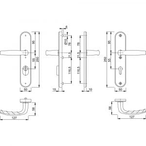 HOPPE aluminium inbraakwerend langschild-krukgarnituur met cilinder-trekbeveiliging voor buitendeuren. Voldoet aan Politie Keurmerk Veilig Wonen en SKG***. Voor zowel links- als rechtsdraaiende deuren. PC maat 55 mm. Geschikt voor een deurdikte van 53-58 mm.