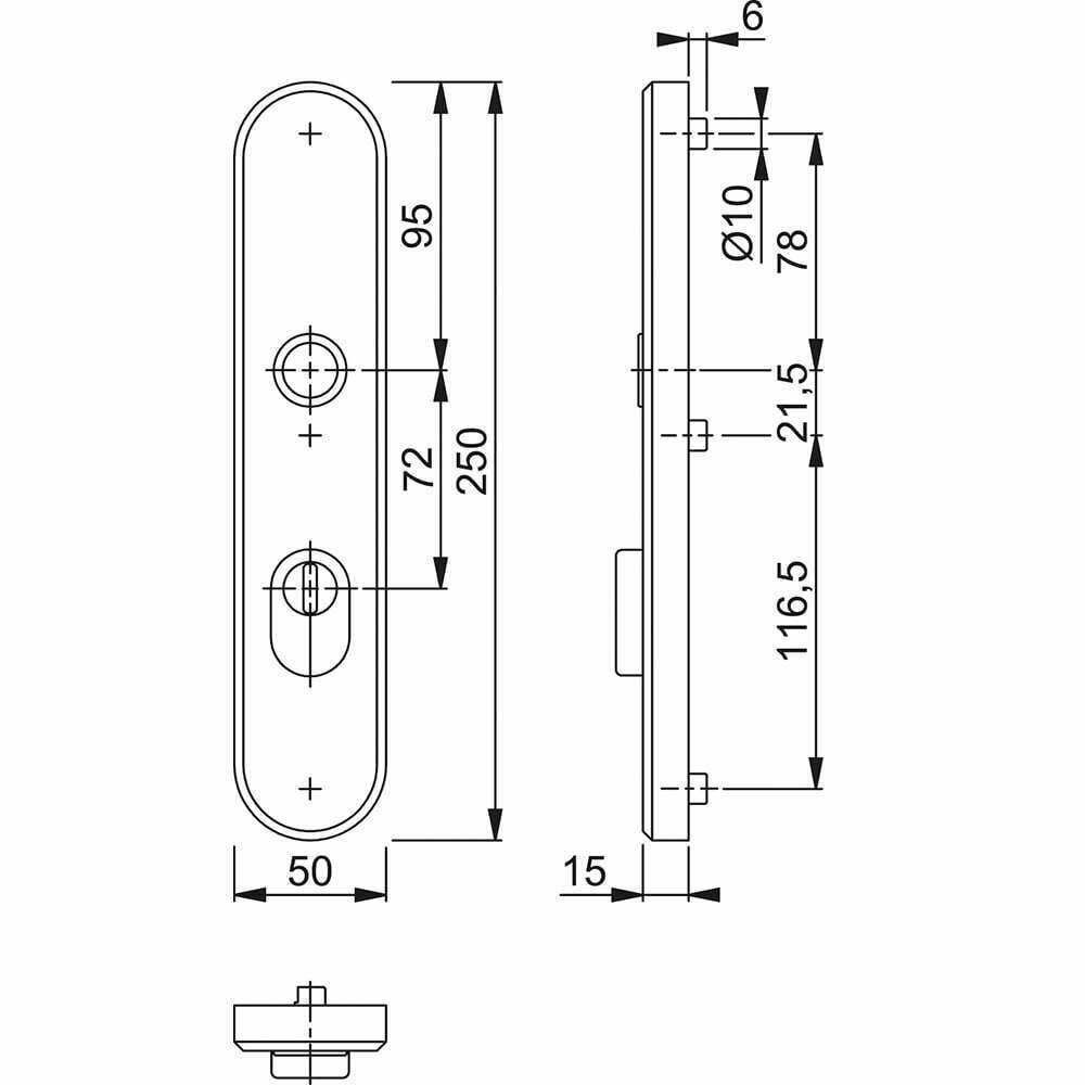 - HOPPE aluminium inbraakwerend langschild met cilinder-trekbeveiliging voor buitendeuren (buitenzijde).
