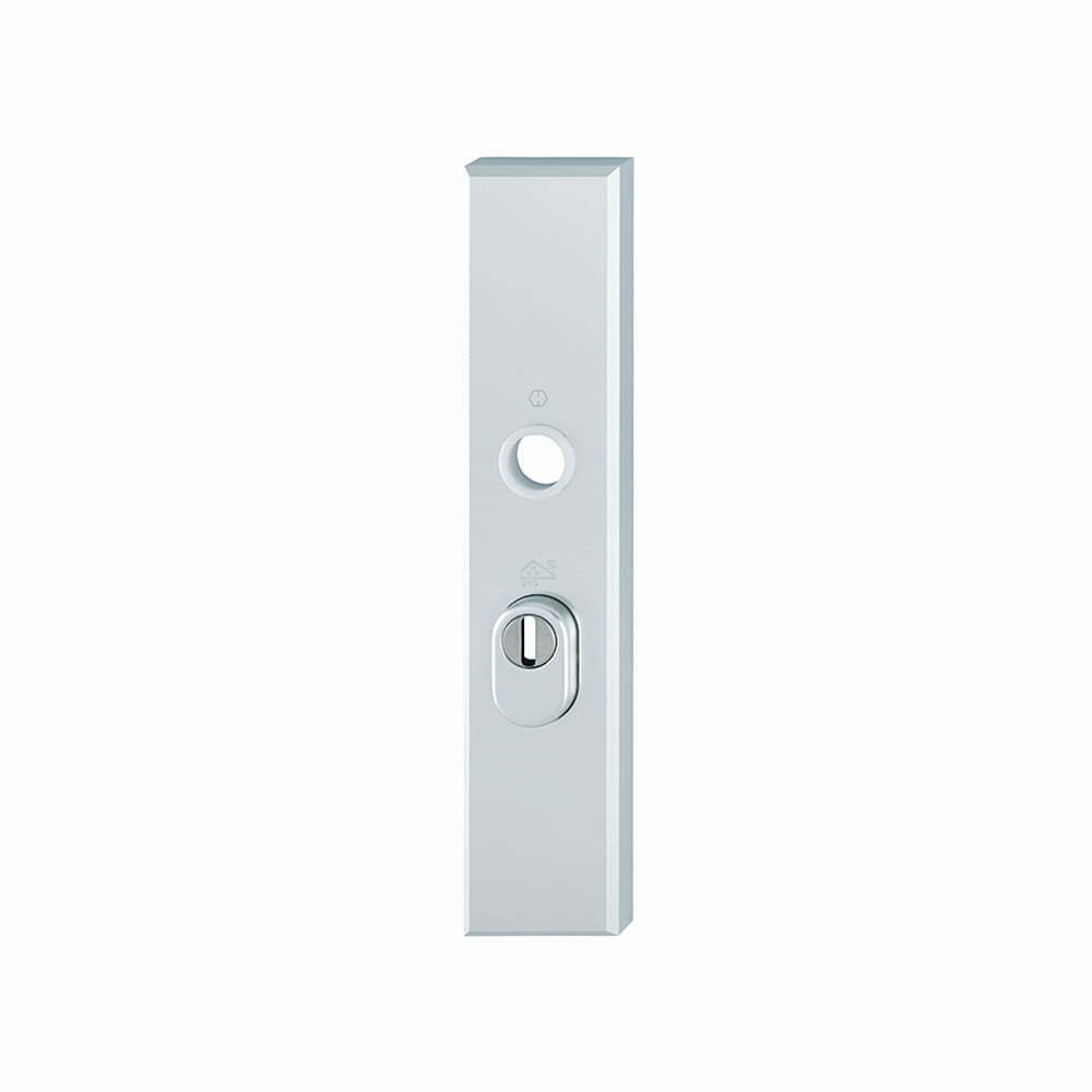 HOPPE aluminium inbraakwerend langschild met cilinder-trekbeveiliging voor buitendeuren (buitenzijde). Voldoet in combinatie met de HOPPE massieve aluminium binnenschilden aan SKG®***.
