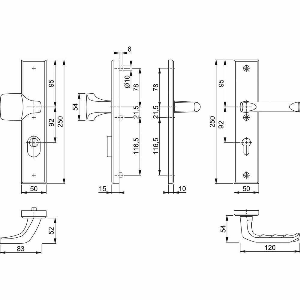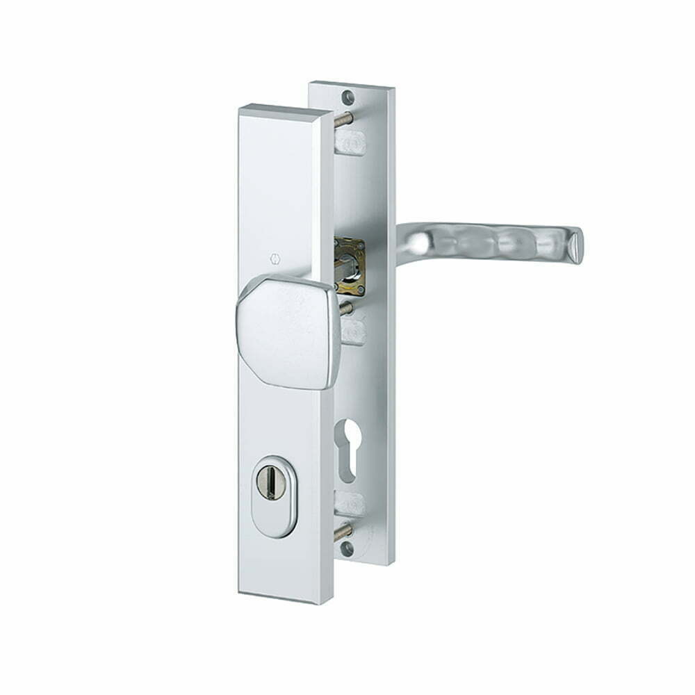 - HOPPE aluminium inbraakwerend langschild-wisselgarnituur met cilinder-trekbeveiliging voor buitendeuren.