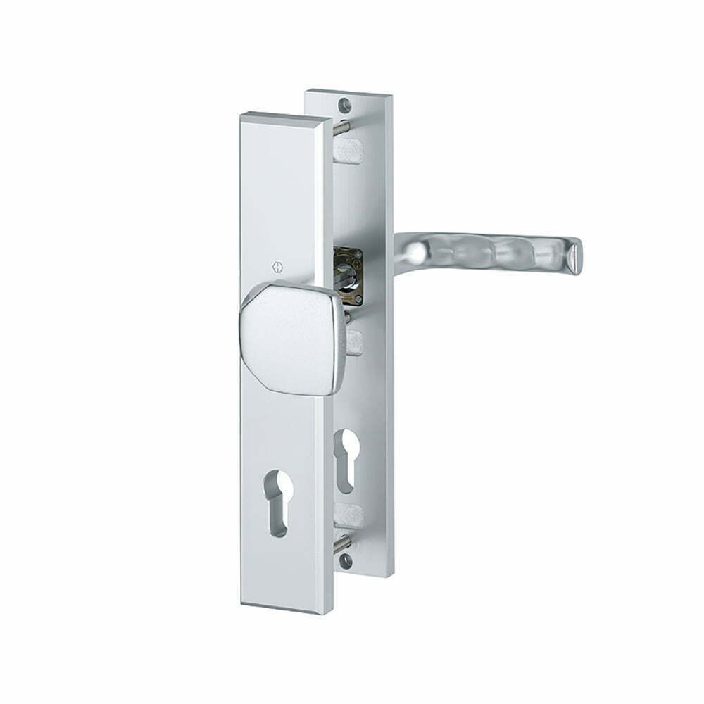 - HOPPE aluminium inbraakwerend langschild-wisselgarnituur voor buitendeuren.