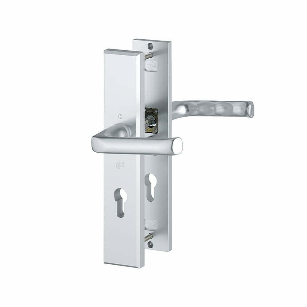 - HOPPE aluminium inbraakwerend langschild-krukgarnituur voor buitendeuren.