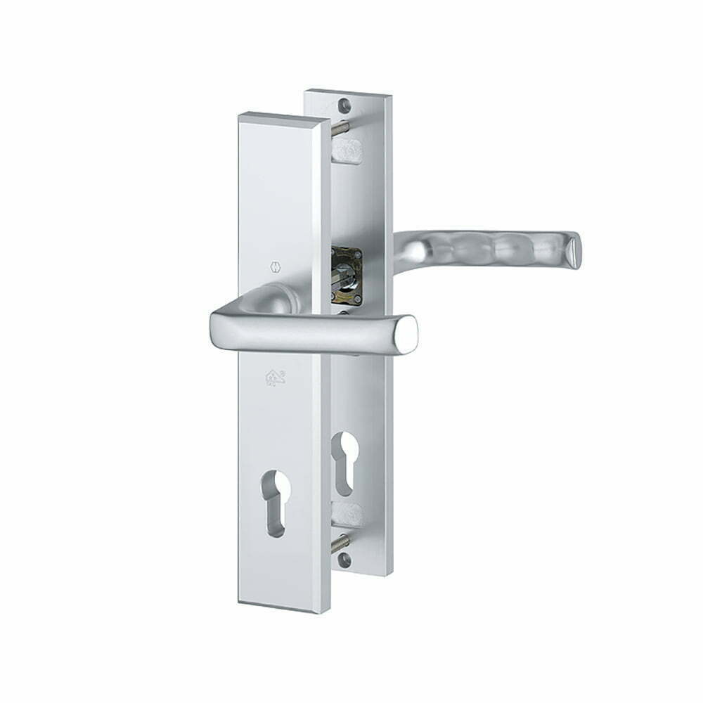 - HOPPE aluminium inbraakwerend langschild-krukgarnituur voor buitendeuren.