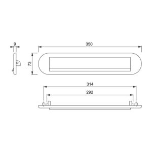 Bevestiging: onzichtbare, doorgaande, stalen schroeven M5, voor de montage is een brievengleuf van 295 x 55 mm in de deur nodig