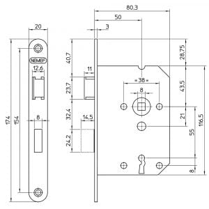 Uniforme slotkastafmeting waardoor dit slot in veel gevallen één op één uitwisselbaar is.