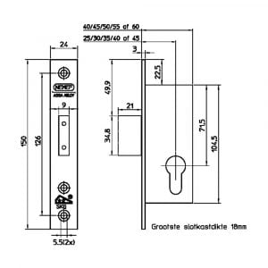 Sluitplaat en sluitkom niet standaard bijgeleverd.