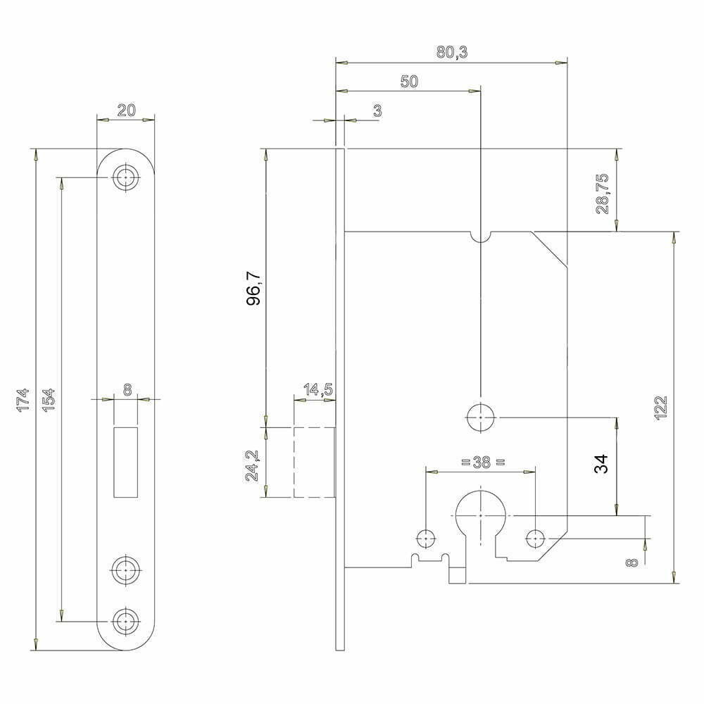 - 1 stuks sluitplaat verzinkt.