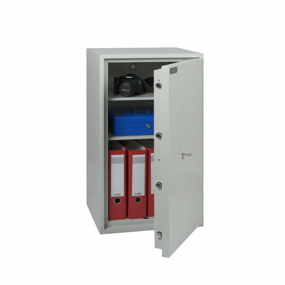 - Standaard uitgevoerd met EN 1300 gecertificeerd dubbelbaard klavierslot met 2 sleutels.