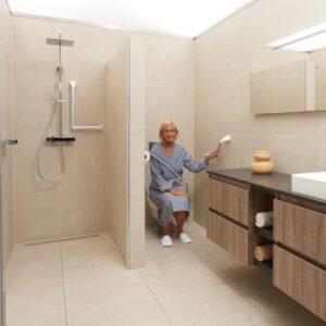 - Deze gehoekte wandbeugel van 45° wordt het meest toegepast bij het toilet (horizontale gedeelte om te gaan zitten, schuine gedeelte om te gaan staan) en bij het bad.